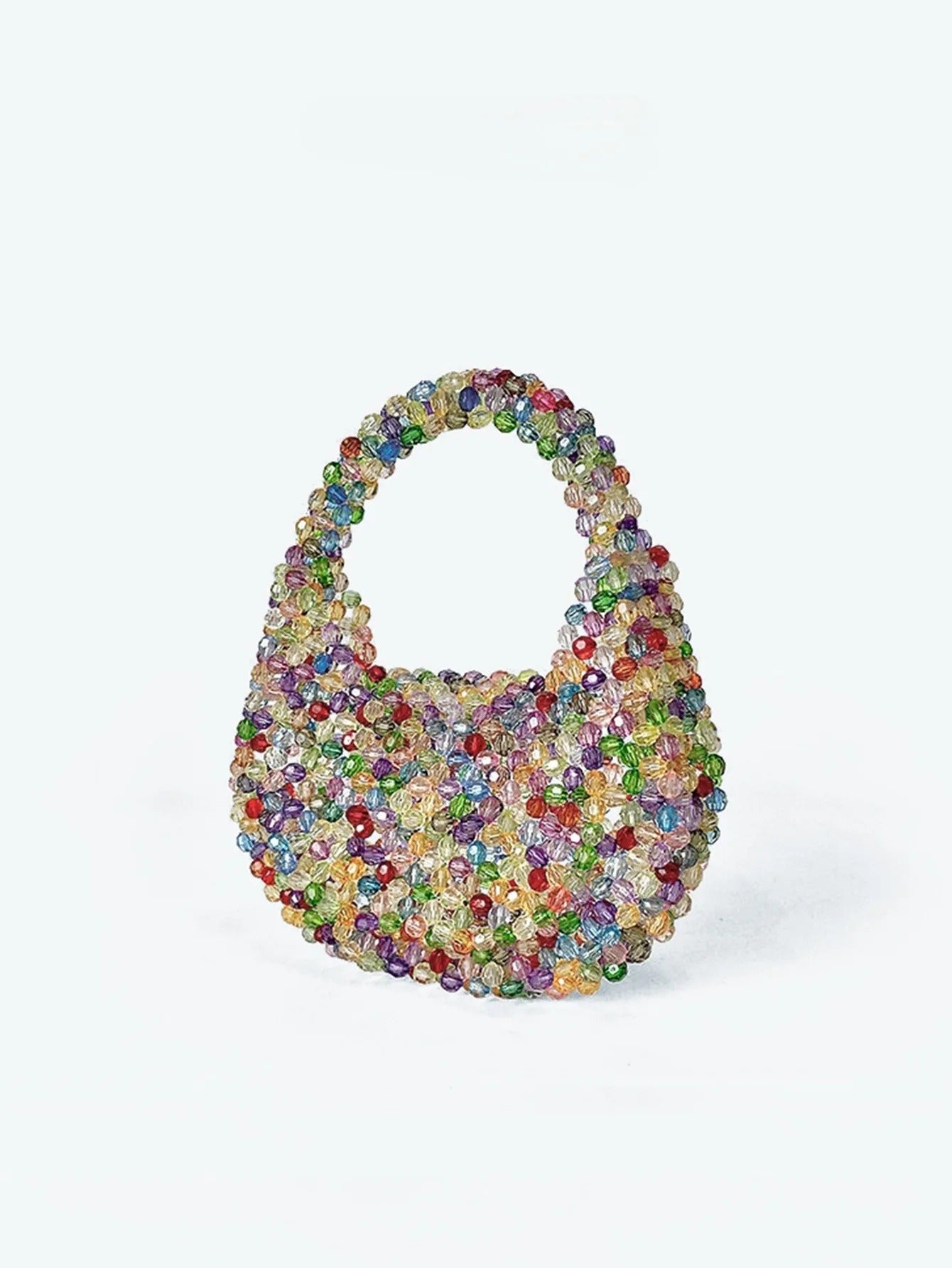 Radiate joy with GIOIA—a name that means "joy" in Italian, perfectly matching the cheerful spirit of this colorful beaded handbag. Handcrafted from glossy beads in a rainbow palette, GIOIA is equal parts accessory and art piece. Whether you’re heading to brunch, a beach party, or a sunset soirée, this mini bag adds a vibrant pop to every look.
