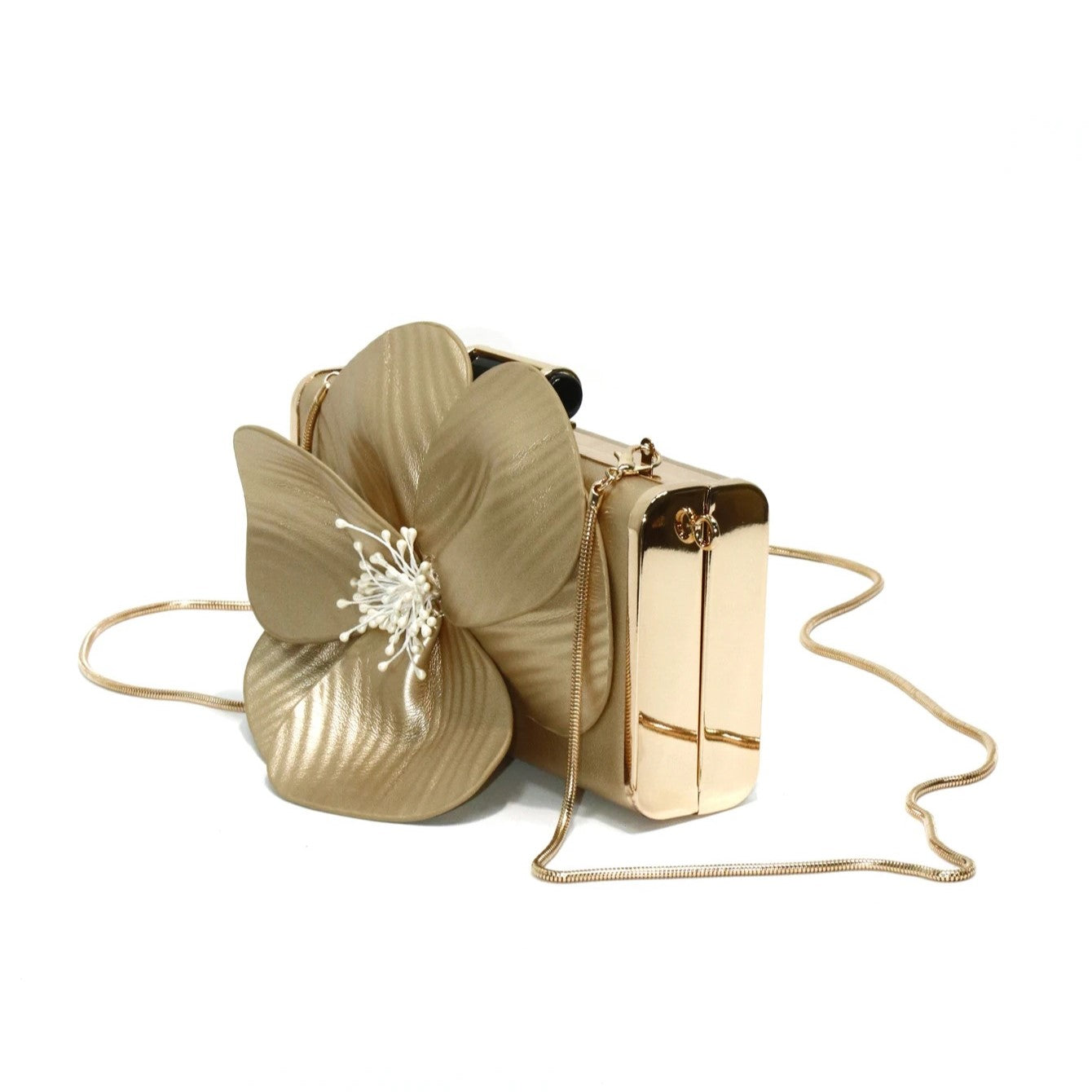 🌸 ISOLDE channels timeless elegance with a touch of Eastern romance. This structured box clutch features a sculpted camellia flower and delicate Chinoiserie-inspired detailing—ideal for black-tie weddings, upscale banquets, or red carpet-worthy moments.