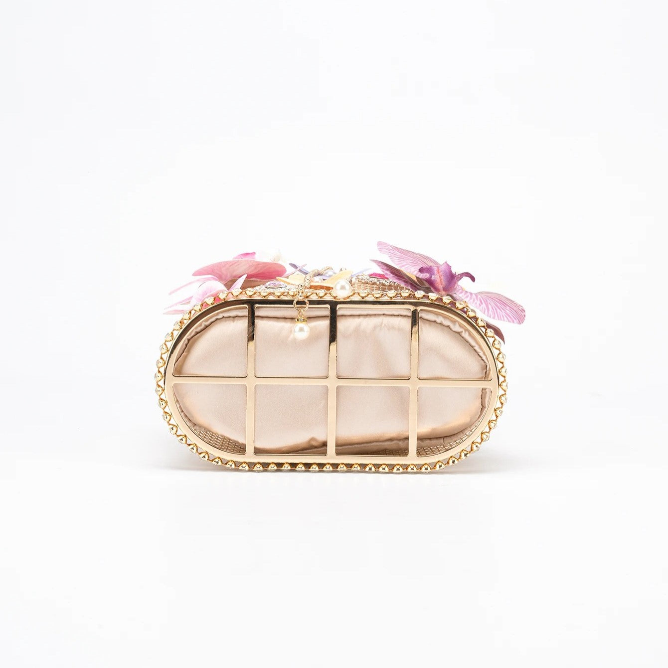 ✨ The unique island-cage silhouette adds dimension and drama, while the spacious interior holds your essentials—from lipstick to mini perfume. Whether carried by its polished handle or styled beside an evening gown, MAËLLE brings charm and couture appeal to any special occasion.