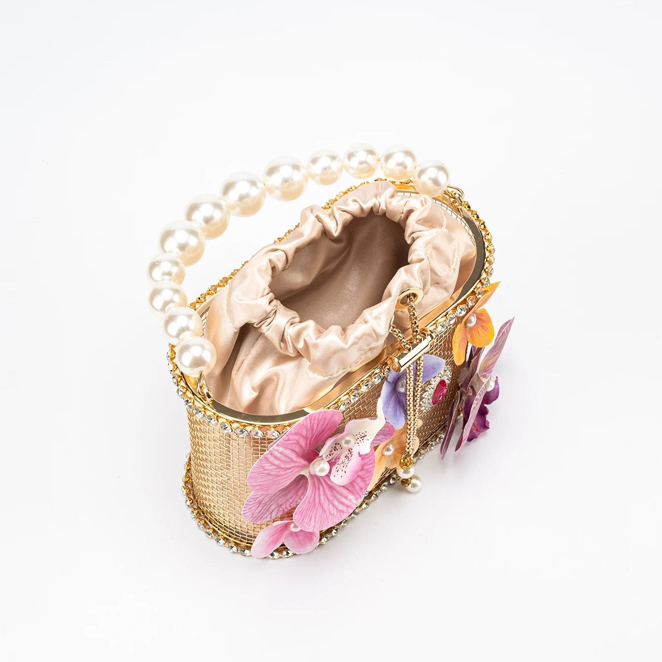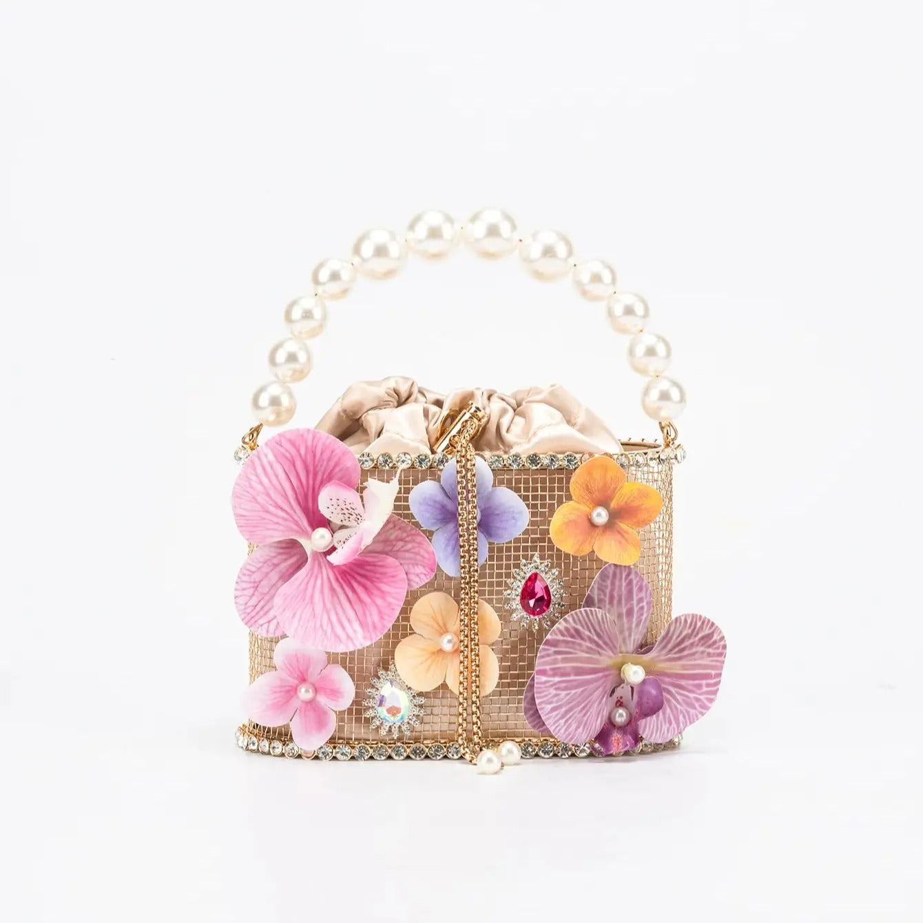 🌸 MAËLLE embodies French elegance with a touch of modern flair. This structured banquet handbag features a gleaming metallic finish and an intricate openwork floral cage design inspired by vintage flower baskets. Lightweight yet bold, it’s designed to catch the light and elevate your eveningwear.