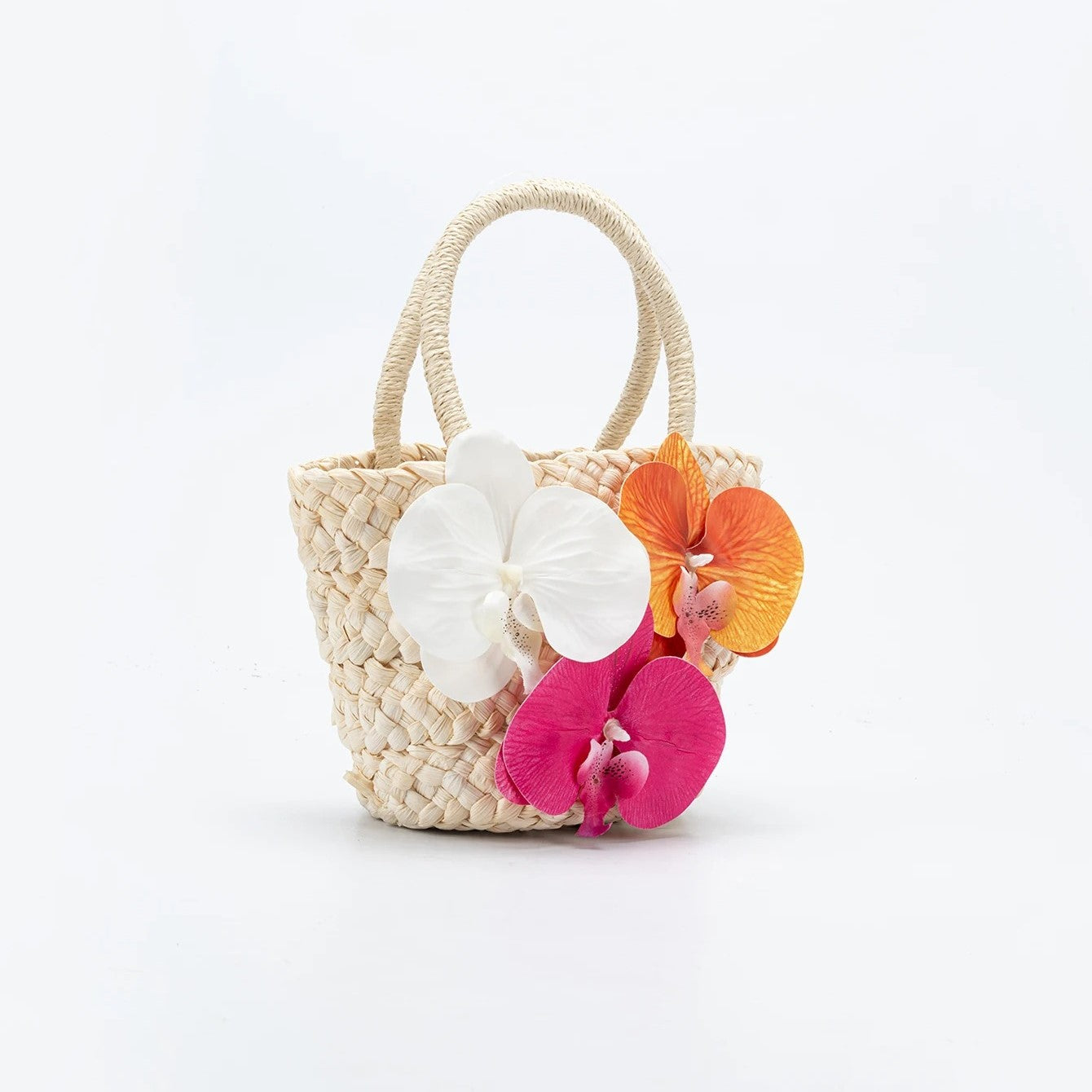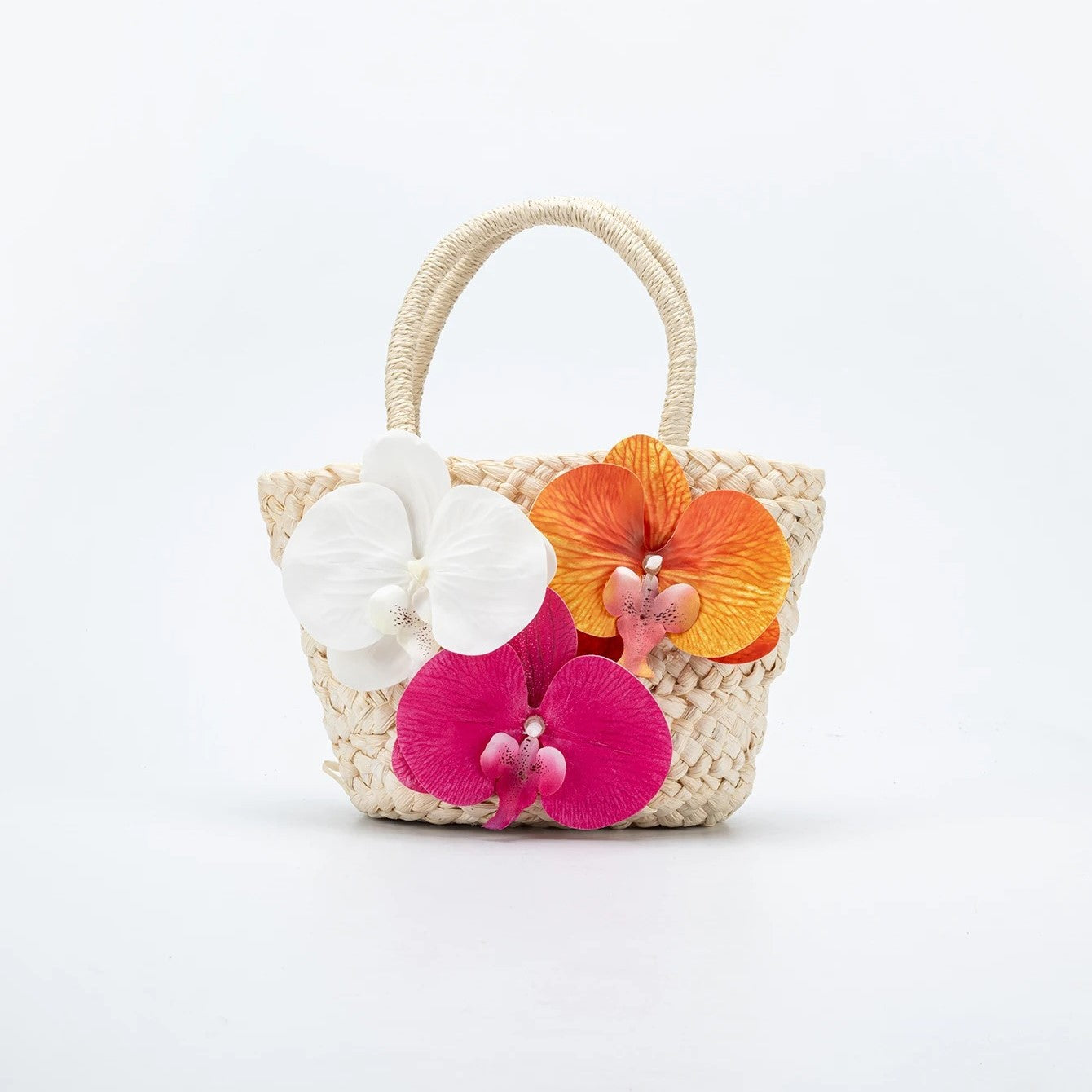 🌾 SERENA captures the carefree spirit of summer with its hand-woven grass texture and charming orchid embellishment. Designed in a relaxed basket shape, this piece blends coastal ease with floral elegance—perfect for beach days, market mornings, or sunny brunches.